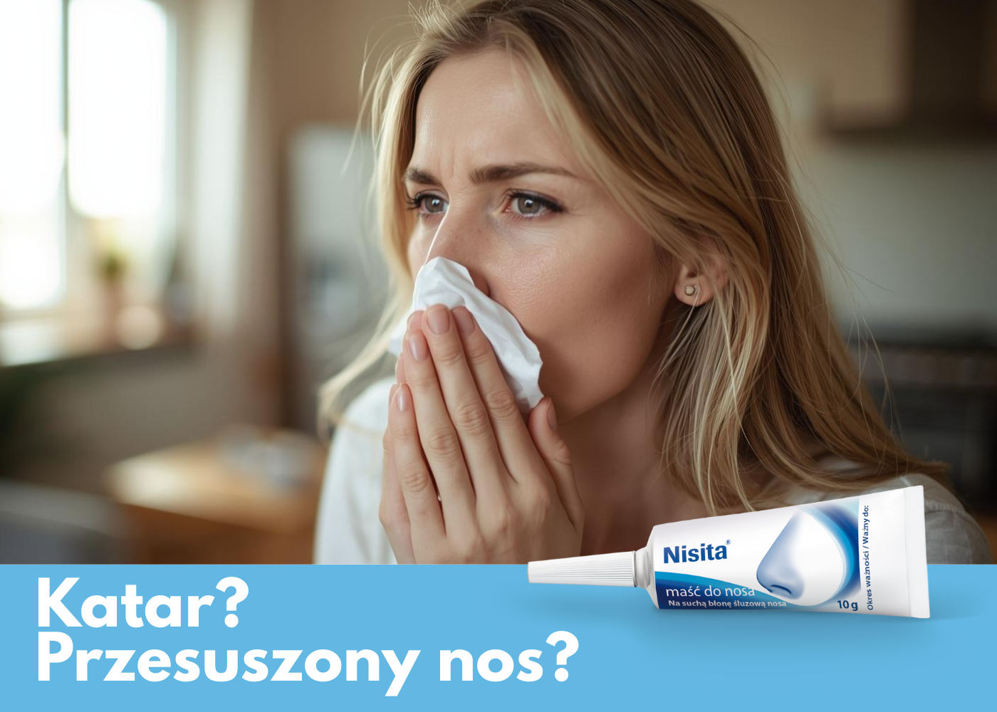 Bezpieczniejszą alternatywą dla preparatów mających w swoim składzie substancje obkurczające naczynia krwionośne błony śluzowej nosa są roztwory soli morskiej, szczególnie w przypadku dłuższej kuracji.[4 ] Produkty te sprawdzą się zarówno w katarze infekcyjnym, jak i alergicznym. Sól fizjologiczna powoduje wypłukiwanie alergenów, zmniejszenie wycieku z nosa i przekrwienia błony śluzowej. Cechuje ja szeroki zakres bezpieczeństwa, możliwość aplikacji u dzieci i kobiet w ciąży oraz dłuższego stosowania, nawet do codziennej higieny nosa.[4, 5,5] W taki sposób działają produkty Nisita®, które w swoim składzie maja dwa rodzaje soli: chlorek sodu i wodorowęglan sodu o stężeniu izotonicznym. Przeznaczone są one do łagodzenia objawów zatkanego nosa oraz oczyszczania i nawilżania śluzówki. Produkty te, znajdzą rówież uznanie wśród osób, które mają problem z używaniem tzw. "wody morskiej do nosa". Nisita® posiada bardzo zbilansowany skład, dzięki czemu jest delikatna i nie podrażnia szczeglnie wrażliwej u niektóych osób śluzówki nosa.
